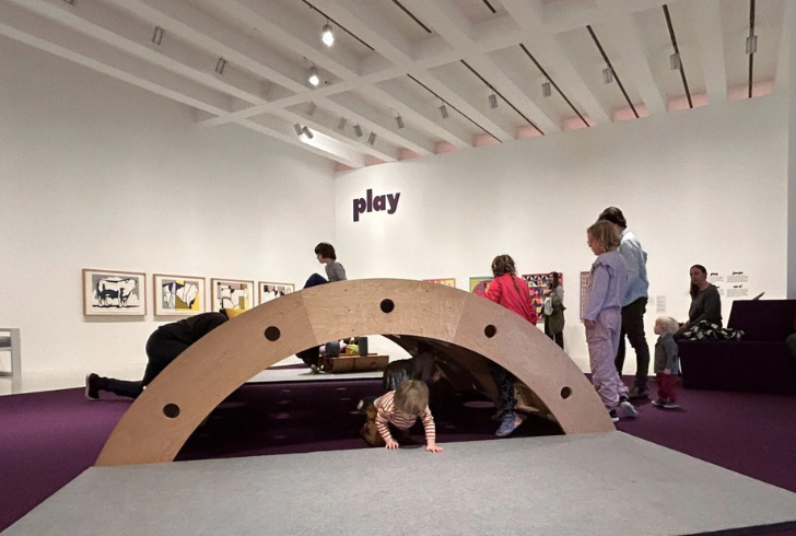 "Show & Tell" provides families with a space to engage with contemporary art in a hands-on way. Each zone offers a different experience—climbing, discovering, storytelling, watching, or creating. By combining play with artistic engagement, the Walker Art Center allows children to connect with art actively and imaginatively.